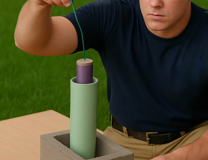 Place the mortar tube on a hard, flat surface. Secure it using bricks or a cinder block around the base so it doesn’t tip over.