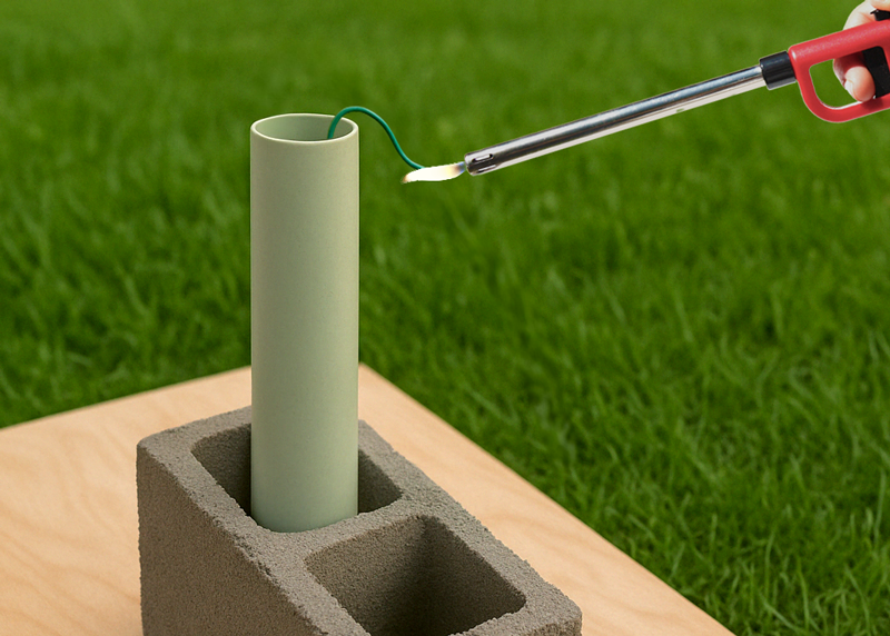 Using a long-reach lighter or punk, light the end of the fuse, then quickly back up at least 20-30 feet. Never lean over the tube to light!