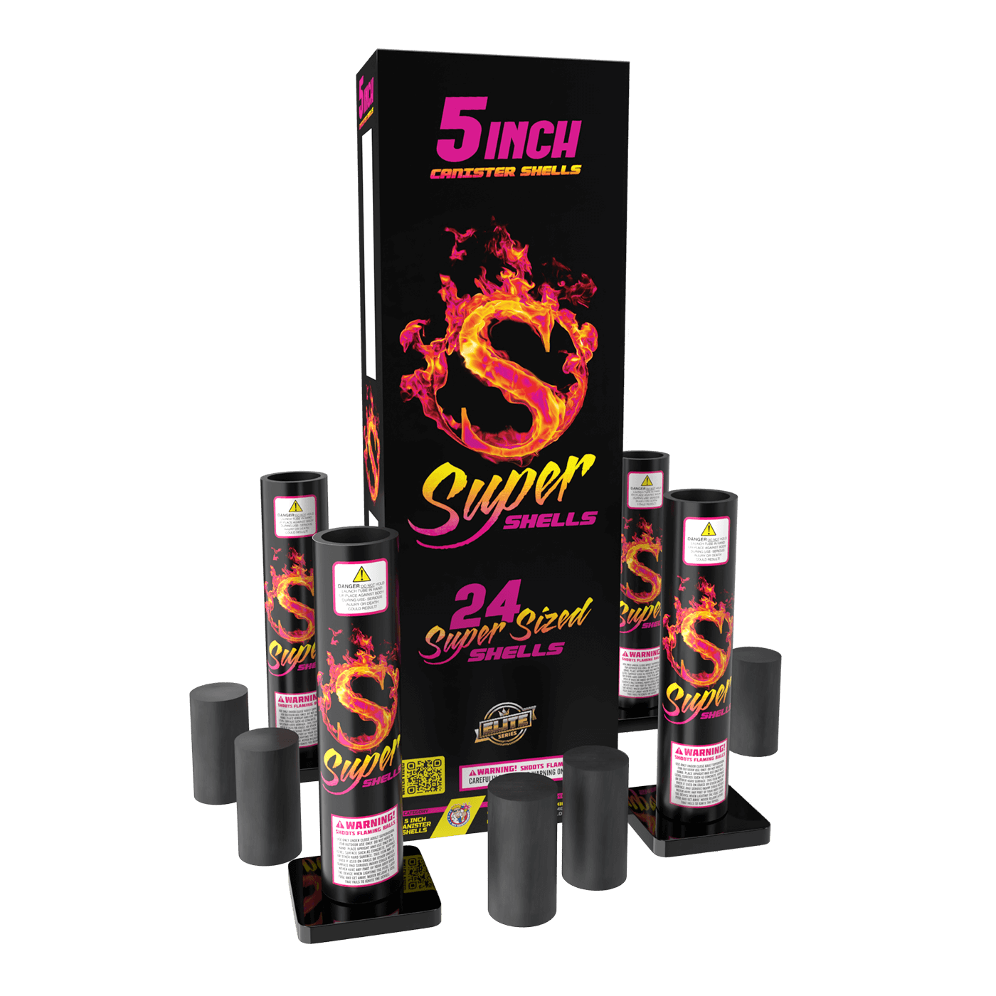 These massive 5? canister shells provide the largest, loudest, highest and most colorful breaks available today!